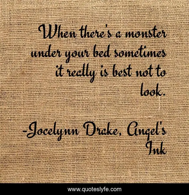 "Jocelynn Drake, Angel's Ink Quotes." Quoteslyfe.com, 2025. Fri. 05 Dec. 2025. <https://www.quoteslyfe.com/quote/When-there-s-a-monster-under-your-138258>.