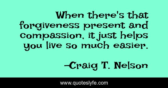 This page presents the quote "When there's that forgiveness present and compassion, it just helps you live so much easier.". Author of this quote is Craig T. Nelson. This quote is about compassion, live,.