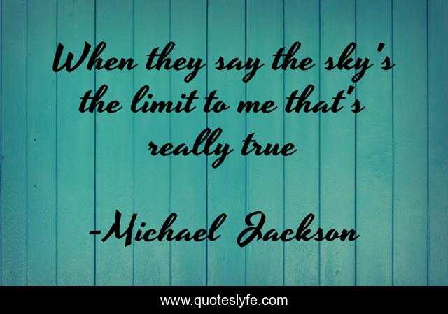 This page presents the quote "When they say the sky's the limit to me that's really true". Author of this quote is Michael Jackson. This quote is about confidence, musician, wisdom, inspirational, dreaming, enthusiasm,.