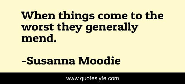 This page presents the quote "When things come to the worst they generally mend.". Author of this quote is Susanna Moodie. This quote is about pessimism, optimism,.
