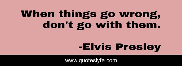 This page presents the quote "When things go wrong, don't go with them.". Author of this quote is Elvis Presley. This quote is about giving-up, life, hopelessness, positivity, perseverance,.
