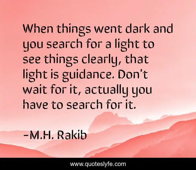 This page presents the quote "When things went dark and you search for a light to see things clearly, that light is guidance. Don't wait for it, actually you have to search for it.". Author of this quote is M.H. Rakib. This quote is about guidance, struggle,.