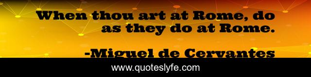This page presents the quote "When thou art at Rome, do as they do at Rome.". Author of this quote is Miguel de Cervantes. This quote is about thou, rome, thou art,.