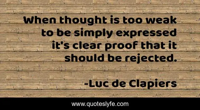 This page presents the quote "When thought is too weak to be simply expressed it's clear proof that it should be rejected.". Author of this quote is Luc de Clapiers. .