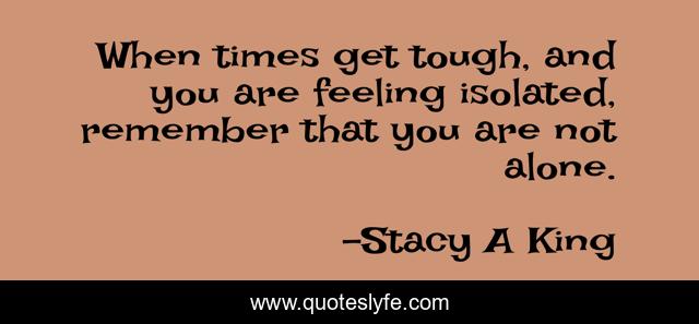 This page presents the quote "When times get tough, and you are feeling isolated, remember that you are not alone.". Author of this quote is Stacy A King. .