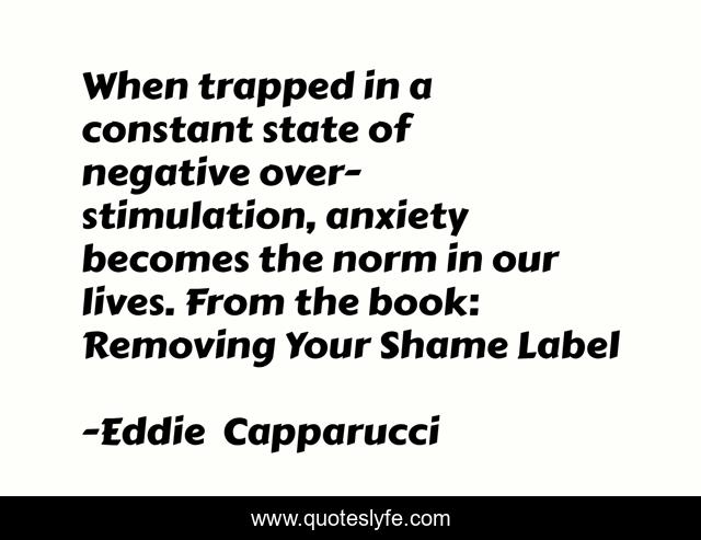 This page presents the quote "When trapped in a constant state of negative over-stimulation, anxiety becomes the norm in our lives. From the book: Removing Your Shame Label". Author of this quote is Eddie Capparucci. This quote is about shame, fear, anxiety, negativity,.