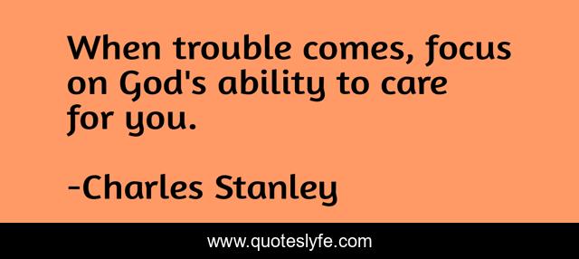 This page presents the quote "When trouble comes, focus on God's ability to care for you.". Author of this quote is Charles Stanley. This quote is about focus, care,.