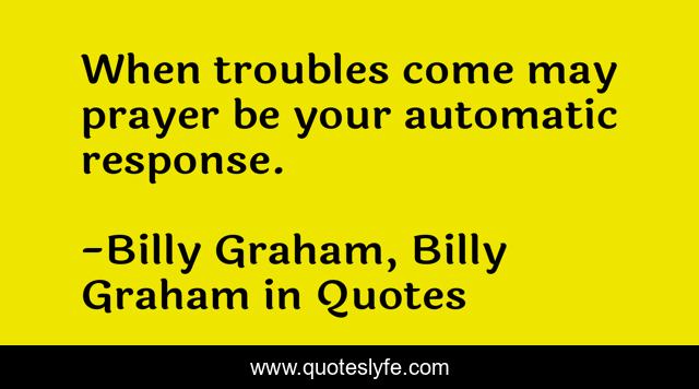 This page presents the quote "When troubles come may prayer be your automatic response.". Author of this quote is Billy Graham, Billy Graham in Quotes. This quote is about billy-graham, prayer,.