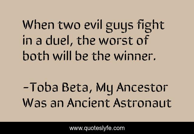 "Toba Beta, My Ancestor Was an Ancient Astronaut Quotes." Quoteslyfe.com, 2025. Fri. 05 Dec. 2025. <https://www.quoteslyfe.com/quote/When-two-evil-guys-fight-in-a-220312>.