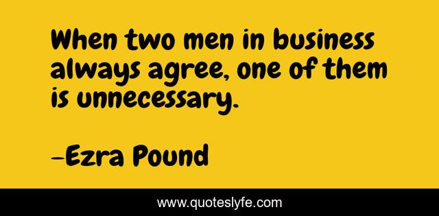 This page presents the quote "When two men in business always agree, one of them is unnecessary.". Author of this quote is Ezra Pound. This quote is about always, two, business,.