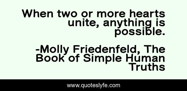 "Molly Friedenfeld, The Book of Simple Human Truths Quotes." Quoteslyfe.com, 2025. Sat. 06 Dec. 2025. <https://www.quoteslyfe.com/quote/When-two-or-more-hearts-unite-anything-188063>.