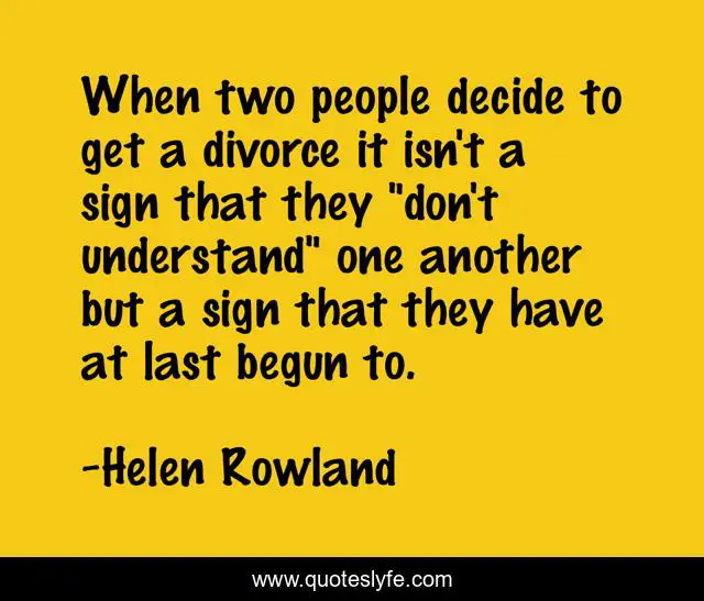 This page presents the quote "When two people decide to get a divorce it isn't a sign that they "don't understand" one another but a sign that they have at last begun to.". Author of this quote is Helen Rowland. .