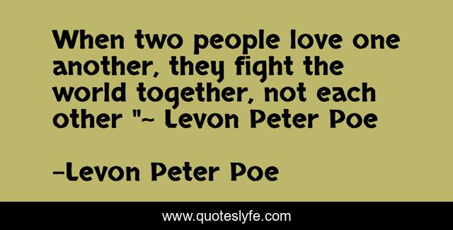 This page presents the quote "When two people love one another, they fight the world together, not each other "~ Levon Peter Poe". Author of this quote is Levon Peter Poe. .