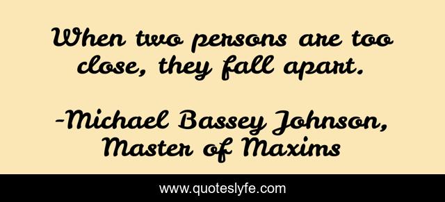 "Michael Bassey Johnson, Master of Maxims Quotes." Quoteslyfe.com, 2025. Sun. 07 Dec. 2025. <https://www.quoteslyfe.com/quote/When-two-persons-are-too-close-they-161451>.