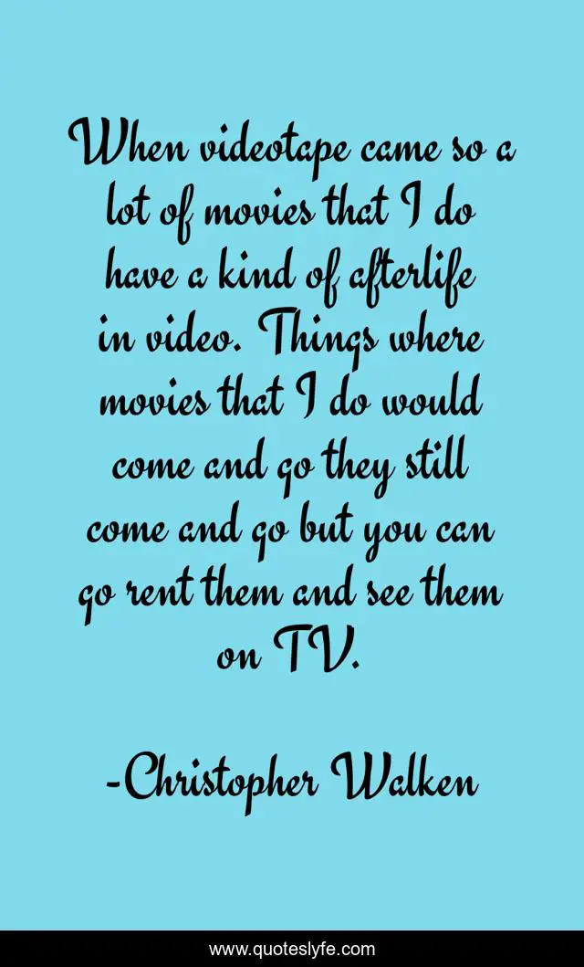 This page presents the quote "When videotape came so a lot of movies that I do have a kind of afterlife in video. Things where movies that I do would come and go they still come and go but you can go rent them and see them on TV.". Author of this quote is Christopher Walken. This quote is about kind, see,.