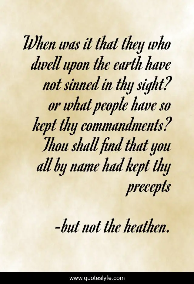 This page presents the quote "When was it that they who dwell upon the earth have not sinned in thy sight? or what people have so kept thy commandments? Thou shall find that you all by name had kept thy precepts". Author of this quote is but not the heathen.. .