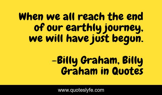 This page presents the quote "When we all reach the end of our earthly journey, we will have just begun.". Author of this quote is Billy Graham, Billy Graham in Quotes. This quote is about death, billy-graham,.