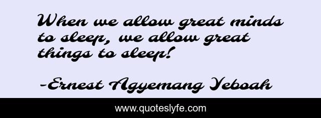 This page presents the quote "When we allow great minds to sleep, we allow great things to sleep!". Author of this quote is Ernest Agyemang Yeboah. This quote is about great-minds, great-men-and-women, legends, greatness,.