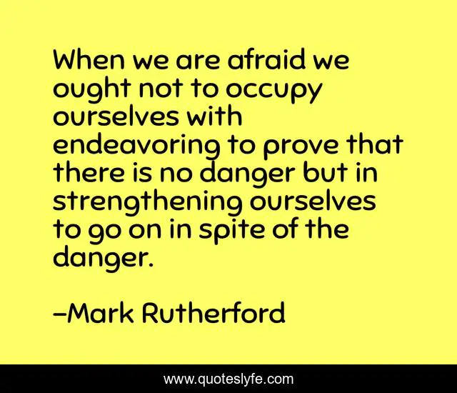 This page presents the quote "When we are afraid we ought not to occupy ourselves with endeavoring to prove that there is no danger but in strengthening ourselves to go on in spite of the danger.". Author of this quote is Mark Rutherford. This quote is about ways, fear, overcome,.