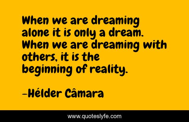 This page presents the quote "When we are dreaming alone it is only a dream. When we are dreaming with others, it is the beginning of reality.". Author of this quote is Hélder Câmara. .