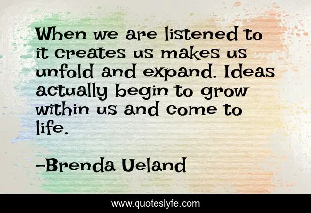 This page presents the quote "When we are listened to it creates us makes us unfold and expand. Ideas actually begin to grow within us and come to life.". Author of this quote is Brenda Ueland. .