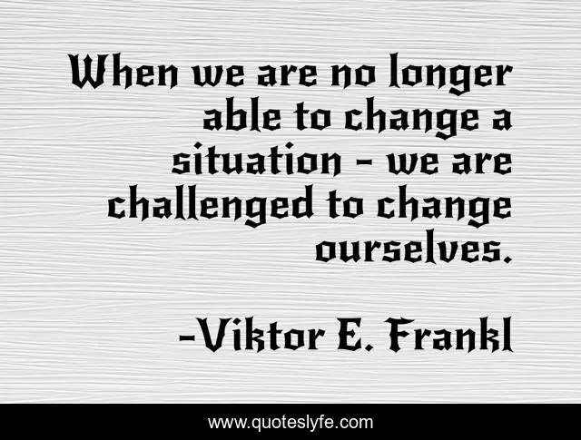 This page presents the quote "When we are no longer able to change a situation - we are challenged to change ourselves.". Author of this quote is Viktor E. Frankl. This quote is about situation, challenged,.