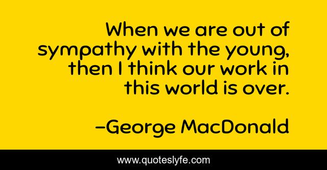 This page presents the quote "When we are out of sympathy with the young, then I think our work in this world is over.". Author of this quote is George MacDonald. This quote is about world, work, think,.