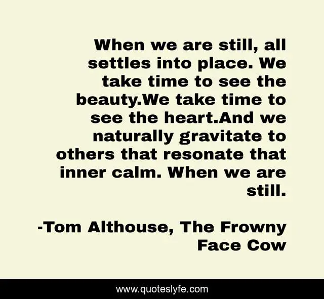 "Tom Althouse, The Frowny Face Cow Quotes." Quoteslyfe.com, 2025. Fri. 05 Dec. 2025. <https://www.quoteslyfe.com/quote/When-we-are-still-all-settles-into-120160>.