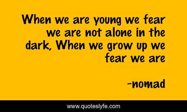 This page presents the quote "When we are young we fear we are not alone in the dark, When we grow up we fear we are". Author of this quote is nomad. This quote is about dark, loneliness, despair, fear, darkness,.