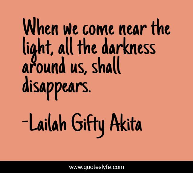 This page presents the quote "When we come near the light, all the darkness around us, shall disappears.". Author of this quote is Lailah Gifty Akita. This quote is about seeking-god, darkness, light, sins, repent, self-realization, self-help, sinner,.