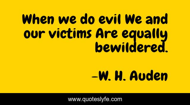 This page presents the quote "When we do evil We and our victims Are equally bewildered.". Author of this quote is W. H. Auden. This quote is about cruelty, wickedness,.