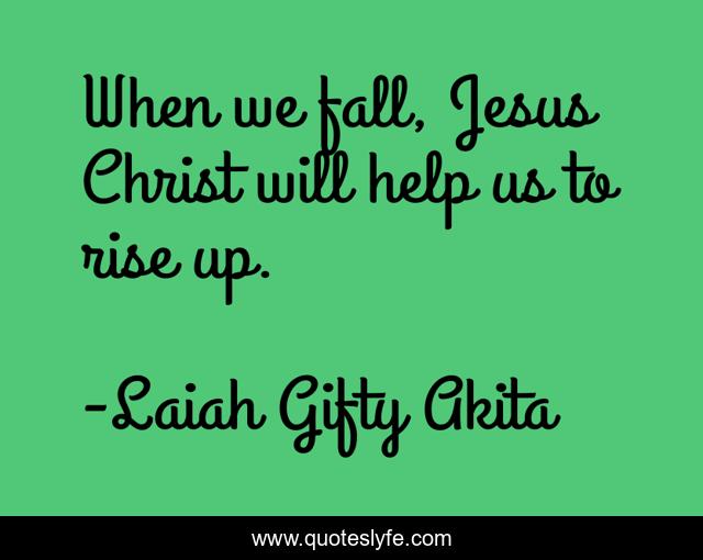 This page presents the quote "When we fall, Jesus Christ will help us to rise up.". Author of this quote is Laiah Gifty Akita. This quote is about christian, rise, encouragement, failure, fall, christ-jesus, difficulties-of-life,.