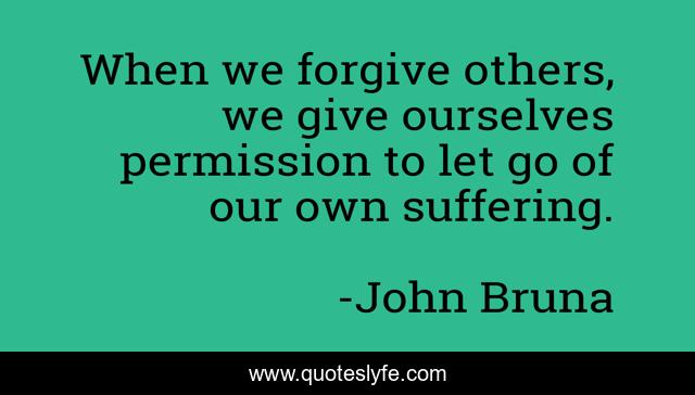 This page presents the quote "When we forgive others, we give ourselves permission to let go of our own suffering.". Author of this quote is John Bruna. This quote is about empowerment, permission, forgiveness, suffering, healing,.