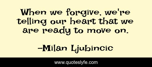This page presents the quote "When we forgive, we're telling our heart that we are ready to move on.". Author of this quote is Milan Ljubincic. This quote is about forgiveness, forgive,.