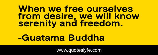 This page presents the quote "When we free ourselves from desire, we will know serenity and freedom.". Author of this quote is Guatama Buddha. This quote is about desire, freedom, serenity,.