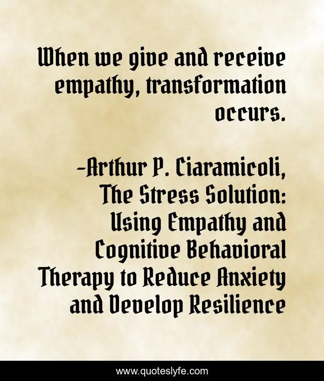 "Arthur P. Ciaramicoli, The Stress Solution: Using Empathy and Cognitive Behavioral Therapy to Reduce Anxiety and Develop Resilience Quotes." Quoteslyfe.com, 2025. Fri. 05 Dec. 2025. <https://www.quoteslyfe.com/quote/When-we-give-and-receive-empathy-transformation-219381>.