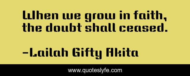 This page presents the quote "When we grow in faith, the doubt shall ceased.". Author of this quote is Lailah Gifty Akita. This quote is about faith, doubt, despair, encouragement, self-help,.