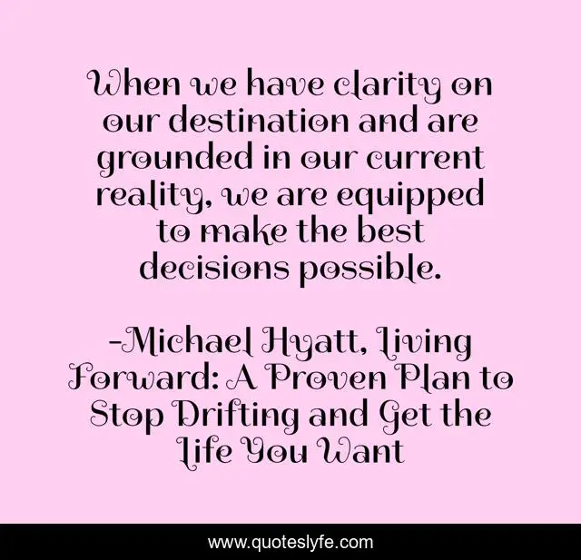 "Michael Hyatt, Living Forward: A Proven Plan to Stop Drifting and Get the Life You Want Quotes." Quoteslyfe.com, 2025. Mon. 08 Dec. 2025. <https://www.quoteslyfe.com/quote/When-we-have-clarity-on-our-destination-140647>.