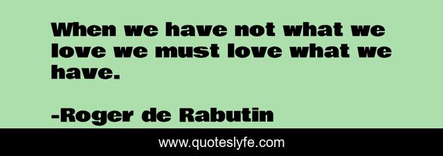 This page presents the quote "When we have not what we love we must love what we have.". Author of this quote is Roger de Rabutin. .