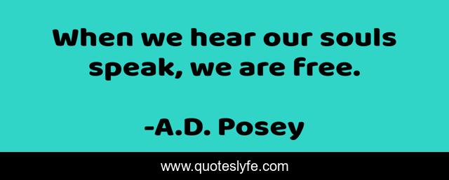 This page presents the quote "When we hear our souls speak, we are free.". Author of this quote is A.D. Posey. This quote is about we, ad-posey, storytelling, storytellers, souls, free, writing, write, writers,.