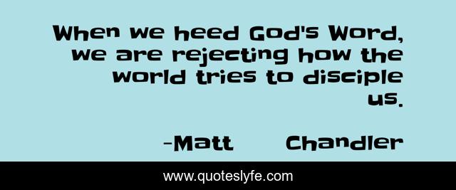 This page presents the quote "When we heed God's Word, we are rejecting how the world tries to disciple us.". Author of this quote is Matt Chandler. This quote is about conventional-wisdom, assumptions, conformity, peer-pressure, culture,.
