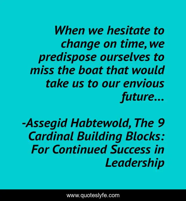 "Assegid Habtewold, The 9 Cardinal Building Blocks: For Continued Success in Leadership Quotes." Quoteslyfe.com, 2025. Fri. 05 Dec. 2025. <https://www.quoteslyfe.com/quote/When-we-hesitate-to-change-on-time-59865>.