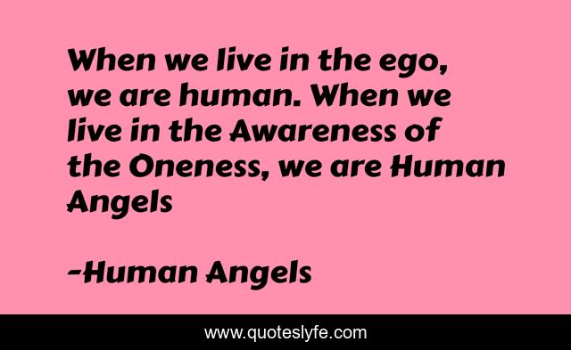 This page presents the quote "When we live in the ego, we are human. When we live in the Awareness of the Oneness, we are Human Angels". Author of this quote is Human Angels. This quote is about oneness, ego, angel,.