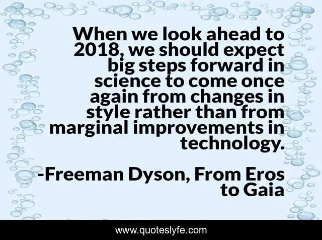 "Freeman Dyson, From Eros to Gaia Quotes." Quoteslyfe.com, 2025. Mon. 08 Dec. 2025. <https://www.quoteslyfe.com/quote/When-we-look-ahead-to-2018-we-110079>.
