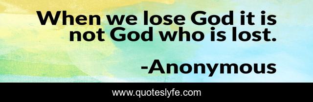 This page presents the quote "When we lose God it is not God who is lost.". Author of this quote is Anonymous. .