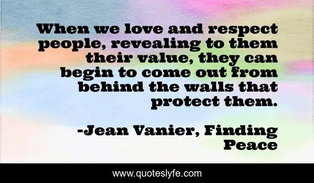 This page presents the quote "When we love and respect people, revealing to them their value, they can begin to come out from behind the walls that protect them.". Author of this quote is Jean Vanier, Finding Peace. This quote is about respect, love, affection,.