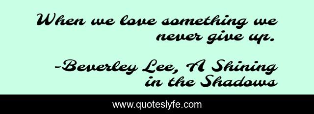 This page presents the quote "When we love something we never give up.". Author of this quote is Beverley Lee, A Shining in the Shadows. This quote is about love, hope, affection,.