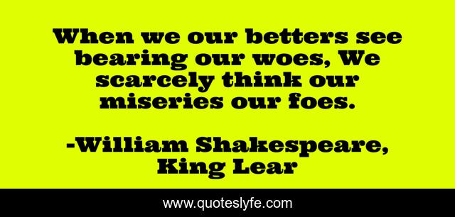 This page presents the quote "When we our betters see bearing our woes, We scarcely think our miseries our foes.". Author of this quote is William Shakespeare, King Lear. This quote is about woe, misery,.