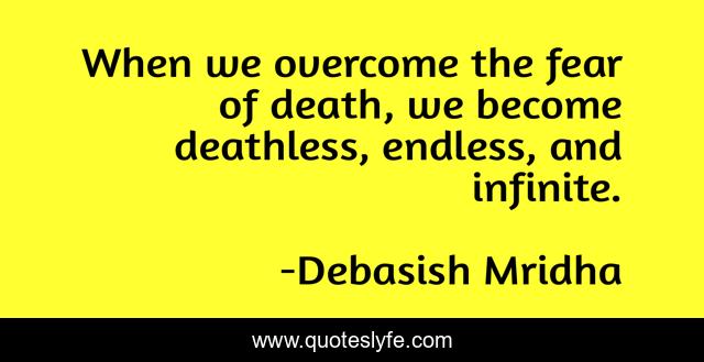 This page presents the quote "When we overcome the fear of death, we become deathless, endless, and infinite.". Author of this quote is Debasish Mridha. This quote is about philosophy, debasish-mridha, become-infinite, overcome-the-fear-of-death, quotes, debasish-mridha-md, inspirational, enthusiasm, fear-of-death,.