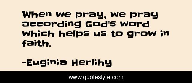 This page presents the quote "When we pray, we pray according God's word which helps us to grow in faith.". Author of this quote is Euginia Herlihy. .